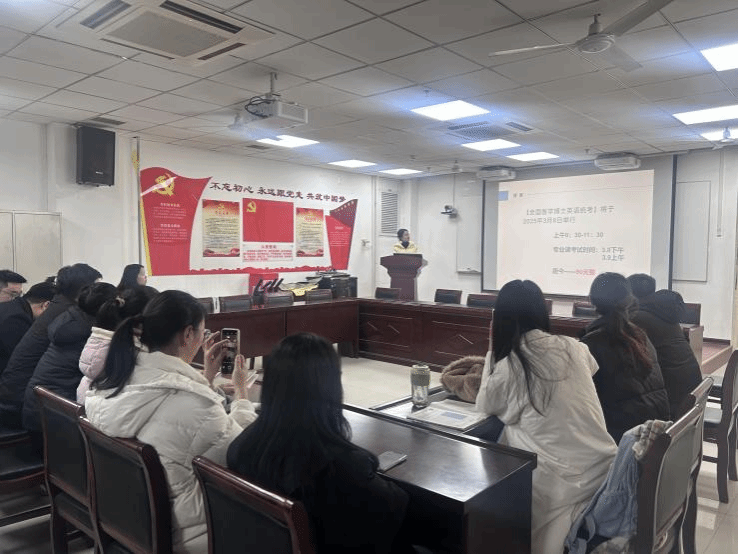 活动伊始,张双丽同学以统考的考试科目为切入点,逐一剖析了各科目的重要性及其在总分中的比重。针对每一科目,她都提供了个性化的学习策略,特别是在英语学习方面,她细致入微地介绍了听力、阅读、翻译等题型的备考方法,并分享了相关的学习资料和实用技巧。同时,她还回顾了考博心路历程,分享了宝贵的感悟与体会。