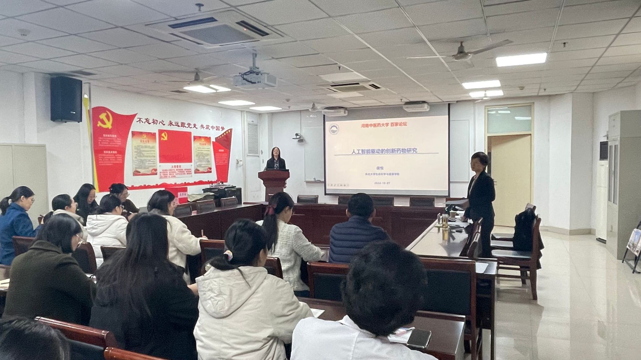 (文/张蓝熙 图/贺红娟)2024年12月7日,葡京娱乐场官网平台 邀请东北大学侯悦教授、海军军医大学周婷婷教授,做客我校百家论坛,在综合楼BM739分别开展题为“人工智能驱动的创新药物研究”“基于多组学分析的临床样本生物标志物发现与验证”的学术讲座,葡京娱乐场 师生80余人参加。讲座由葡京娱乐场官网平台 执行院长冯素香主持。
