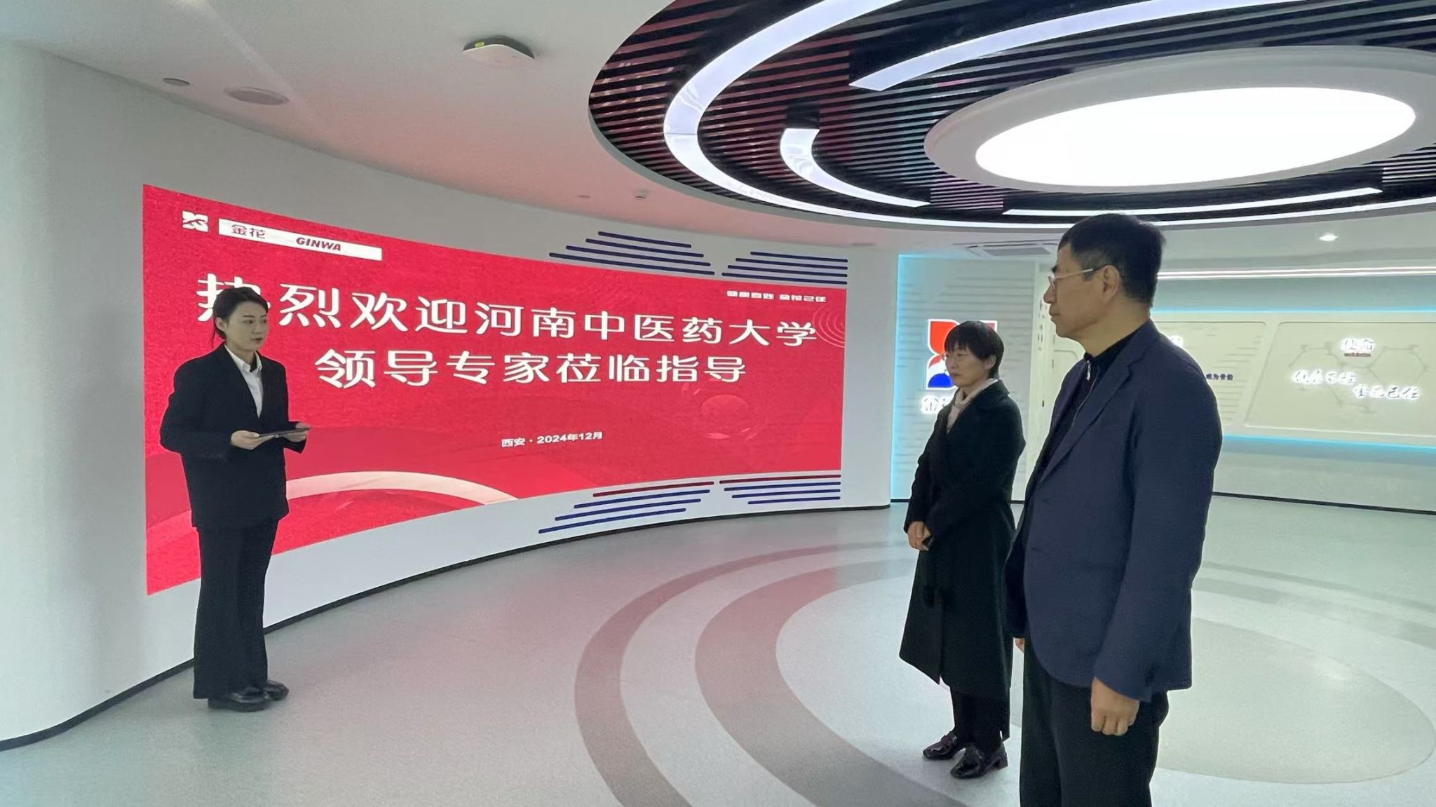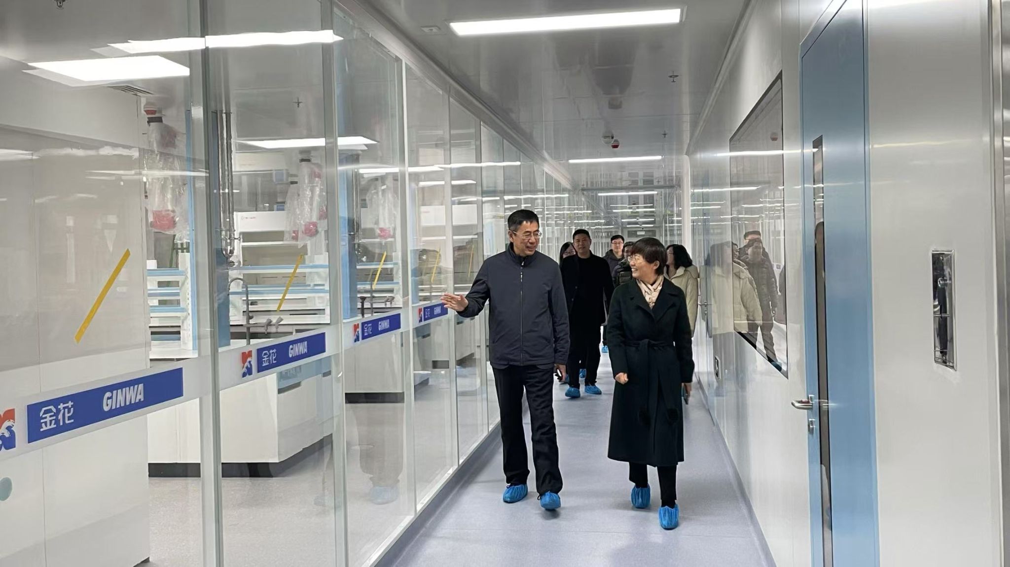 在韩卓军的带领下,冯素香一行参观了金花股份企业展厅、高新制药工厂和草堂基地,了解了金花股份的发展历程、核心产品和未来规划等方面的情况。