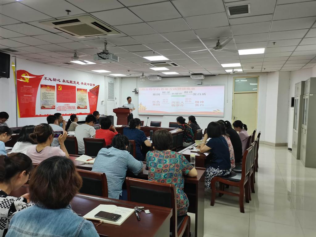 张振强书记从“红色基因是中国共产党人的精神内核、传承好红色基因是成就事业的关键所在、爱国奋斗是我国知识分子的精神基因、新时代弘扬知识分子爱国奋斗精神的重要意义、从红色基因中汲取开启新征程的强劲动力”五个方面,运用大量的党史事例与数据,创新性地通过生物学的思维方法,深刻阐述了“红色基因”是中国共产党百年辉煌的宝贵财富,传承红色基因是当代知识分子汲取并开启新征程的不竭动力。张振强表示,纵观建党百年来,科学技术从来没有像今天这样深刻影响着国家前途命运,从来没有像今天这样深刻影响着人民生活福祉。作为科研人员,我们既面临赶超跨越的难得历史机遇,也面临着差距拉大的严峻挑战,必须以红色基因为指引,以科技创新打造先发优势,把关键核心技术掌握在自己手中,才能够肩负起应有的历史担当。最后,张振强号召全体党员:每人找一个红色基因,精读一篇党史文章,领悟一种精神蛋白,全力做好一件事情。相信通过学百年党史,寻红色基因,助科研发展这条学习主线,每一位党员都会在党史学习中斩获科研火花,助力学校转型发展,献礼党的百年华诞。
