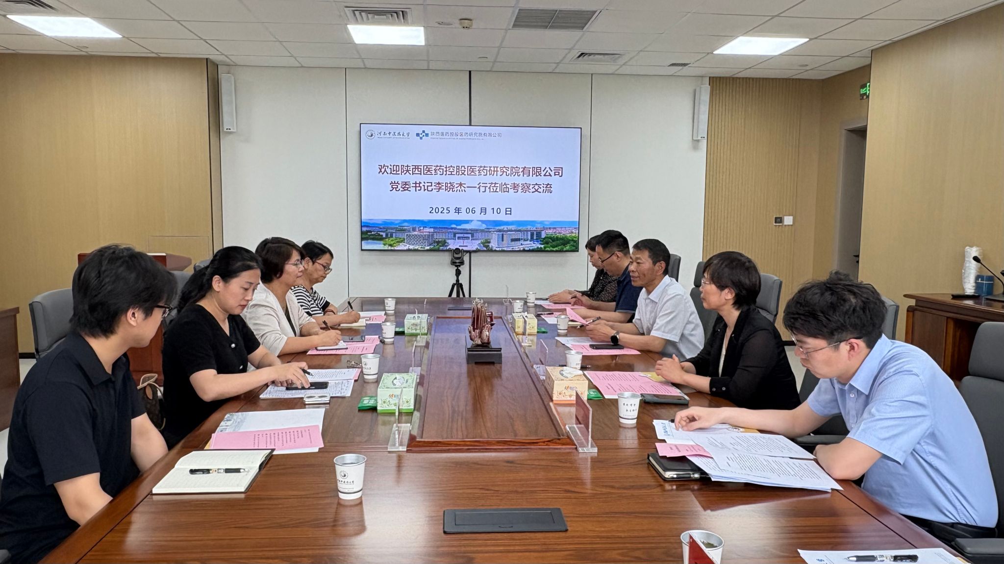 本网讯(文/图 张蓝熙)2025年6月10日下午,陕西医药控股医药研究院有限公司党委书记李晓杰一行4人来校就中药创新药物研发相关事宜调研交流。副校长张振强,科学技术处副处长刘瑞新,葡京娱乐场官网平台 副院长谢治深,呼吸疾病中医药防治省部共建协同创新中心骨干人员参加座谈交流。会议由葡京娱乐场官网平台 执行院长冯素香主持。