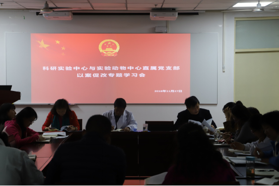 为进一步贯彻校纪委《关于深入学习贯彻省委办公厅、省政府办公厅关于深入贯彻中办<通报>精神暨认真开好以案促改专题民主生活会的通知》的部署和有关要求,2018年11月27日下午3:00在教学综合大楼BM739会议室,科研实验中心与实验动物中心直属党支部召开以案促改专题学习会,中心班子成员、支委委员、党小组组长、科级干部及业务科室负责人参加会议。支部纪委书记李军主持会议。