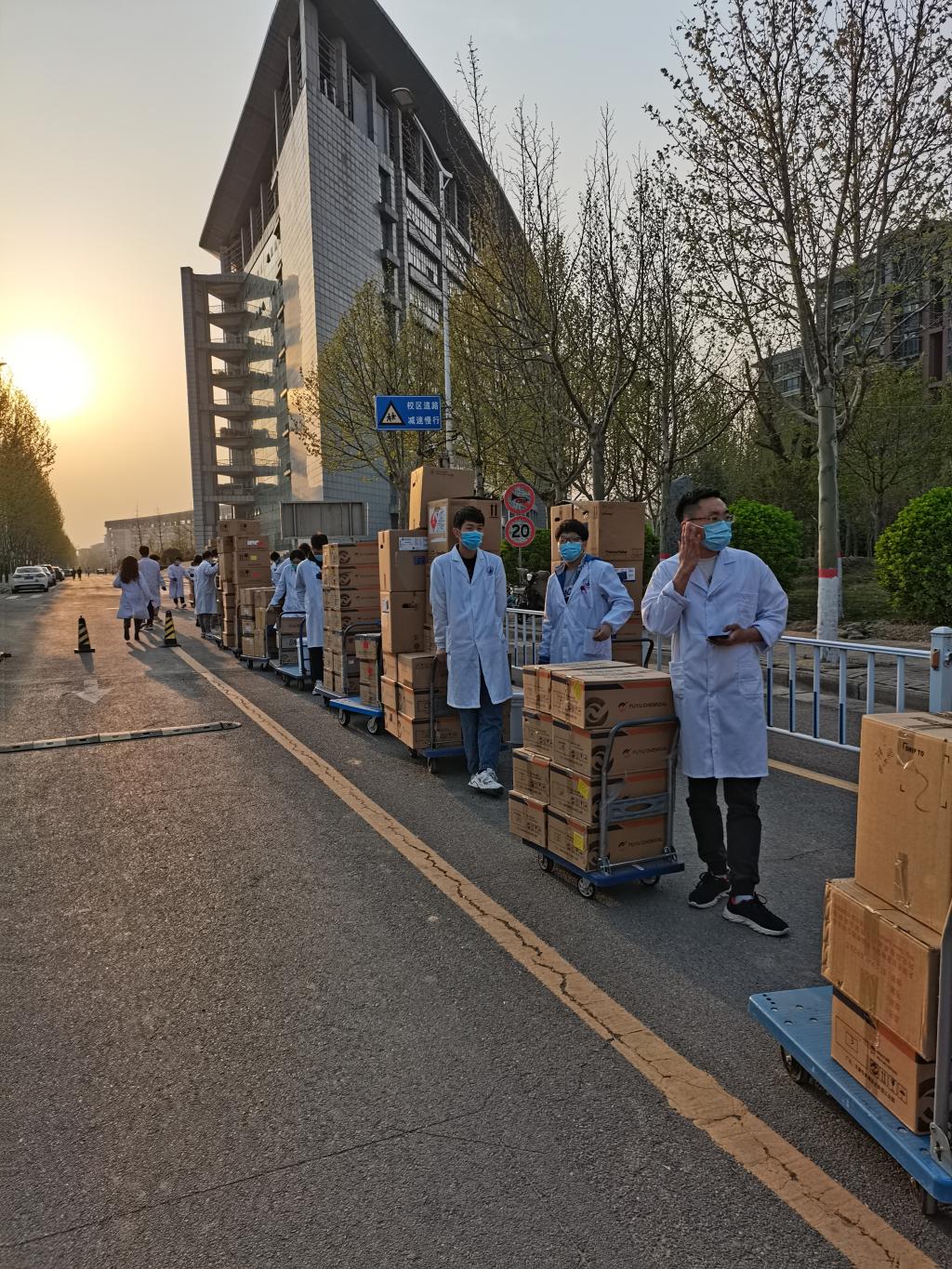 做好相关部署后,转运现场,秩序井然。各小组默契配合,4月2日,共为全校师生合规处置各类实验室危险废弃物7.5吨,其中:废液4.233吨,空试剂瓶2.81吨,过期试剂318.4kg,实验室沾染物148.4kg。有效减少实验室安全隐患的同时,落实疫情常态化管理,杜绝校园环保违法事件的发生,不断提升师生环保意识,落实立德树人根本任务,为平安校园保驾护航的同时,以实际行动迎接二十大的胜利召开。