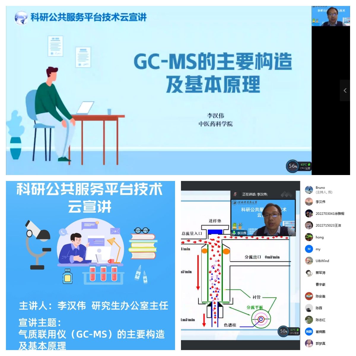 本网讯(文/张俊霞 图/张飞宇)为切实提高科研人员技能素养,葡京娱乐场官网平台 发起“凝心聚力做服务,全心全意为科研”倡议,举办“科研公共服务平台技术云宣讲”系列活动。第三期宣讲于2022年11月7日晚7点线上举行。本期邀请科葡京娱乐场 研究生办公室主任李汉伟作题为“气质联用仪(GC-MS)的主要构造及基本原理”的技术宣讲。