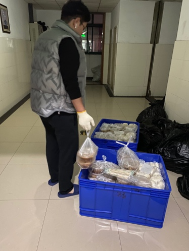 我们9#625宿舍响应党的二十大的号召,争做有理想、敢担当、能吃苦、肯奋斗的新时代好青年!11月10日疫情的突然来袭让大家猝不及防,随后我们被告知需要在宿舍静默管理,老师们便担起了为我们做核酸检测、送餐、扔垃圾的任务。看到老师们辛苦忙碌的身影,让我感到十分感动和心疼。当收到志愿者招募消息后,我们宿舍四人当机立断加入了志愿者行列。我们每日帮助老师抬餐、发餐,晚饭结束后收集楼层的生活垃圾等。虽然志愿者的工作很累,但是让我们感到很充实,更让我们体验到了老师们的辛苦!