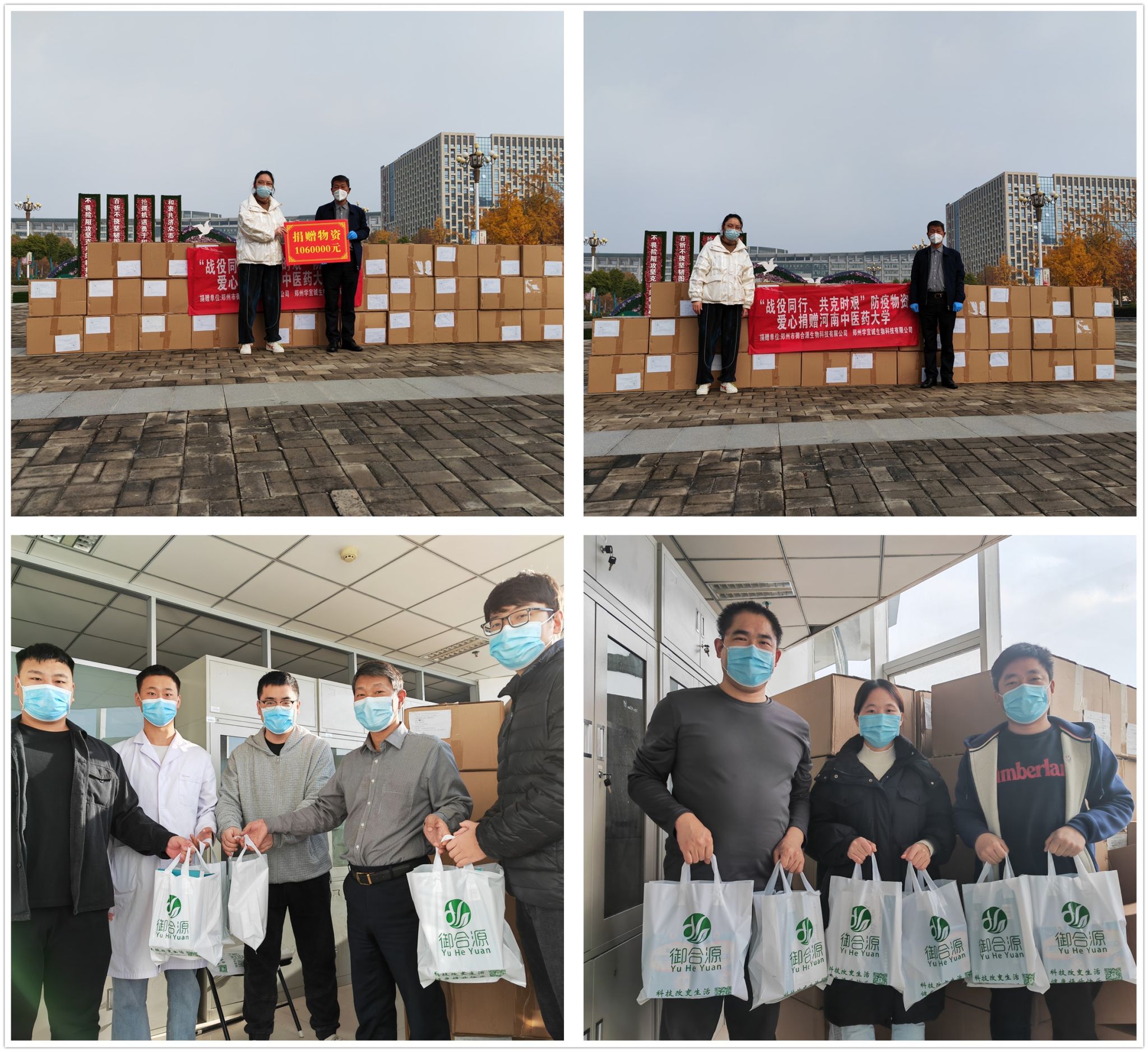 本网讯(文/图 乔永辉)11月19日上午,郑州市御合源生物科技有限公司将价值106万元的防疫物资键合硒产品移交至河南中医药大学,助力学校疫情防控工作。捐赠仪式由葡京娱乐场官网平台 院长张振强主持,企业代表参加。