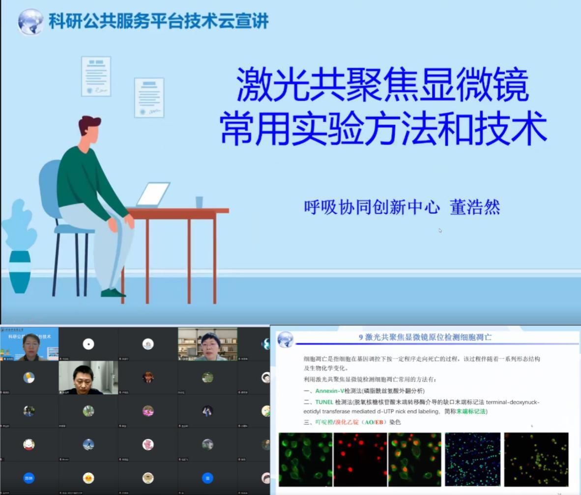 首期宣讲由科葡京娱乐场 院直党支部书记张俊霞主持,冯素香副院长致开幕辞,董浩然围绕《常用激光共聚焦显微镜应用技术及方法》从激光共聚焦显微镜的常用检测技术以及检测注意事项开展了深入浅出的技术宣讲,整个宣讲过程110名师生全程在线。宣讲最后,董浩然对大家在共聚焦制样方面的问题做出详尽解答,获得师生一致好评。
