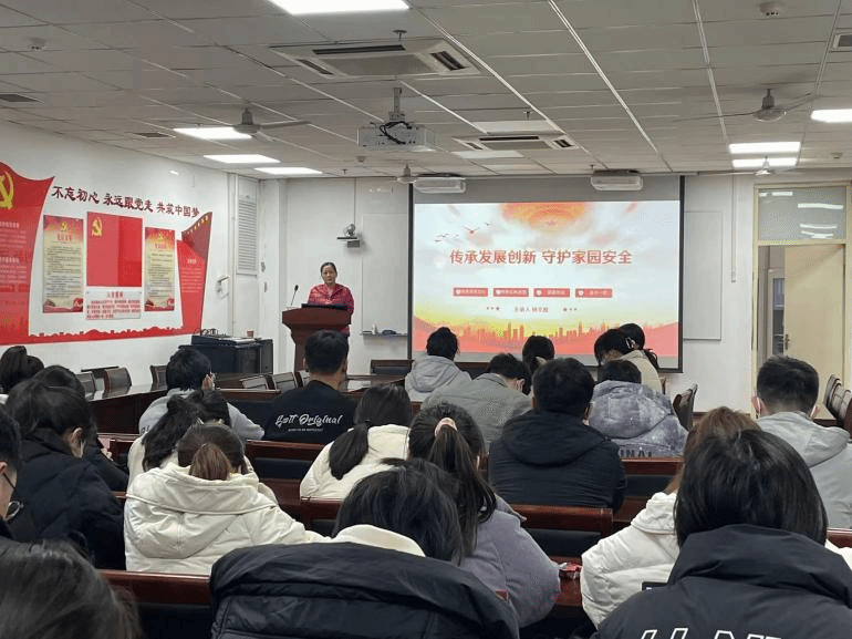 杨文胜院长以“传承发展创新,守护家园安全”为主题,强调要增强党的二十大精神融入研究生的思想政治教育,学习宣传贯彻党的二十大精神,是青年一代听党话、跟党走,走好新的赶考之路的必修课。会上,杨院长呼吁研究生们从自身做起,为科教兴国战略保驾护航,贡献自己的力量,同时鼓励大家学习和传承科研精神,用不懈奋斗践行科研报国使命。与此同时,作为新时代的青年,更应该增强国家安全防范意识,坚持党的绝对领导,筑牢国家安全人民防线,维护好国家安全和社会政治稳定的基础,从生活中的小细节做起,牢固树立国家安全意识。