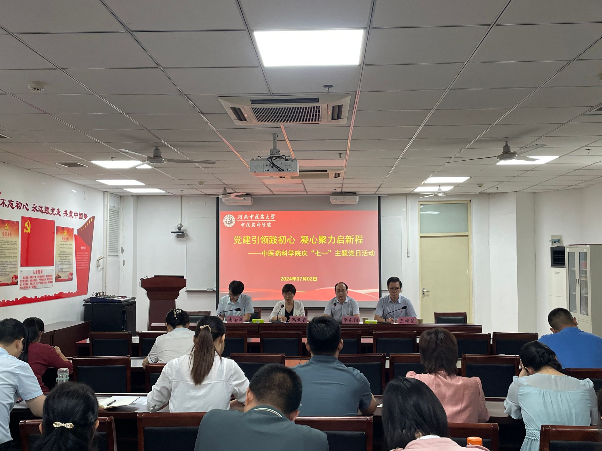本网讯(文/陈晓辉 图/高妍)在中国共产党成立103周年之际,为进一步激励党员师生坚定理想信念、凝聚奋进力量,激发基层党组织活力,增强党性教育和纪律意识,2024年7月2日上午,葡京娱乐场官网平台 党委在综合楼BM739举办“党建引领践初心 凝心聚力启新程”庆“七一”主题党日活动,葡京娱乐场官网平台 领导班子、各支部书记及支委、各团队主任及副主任、办公室全体人员参加。会议由执行院长冯素香主持。