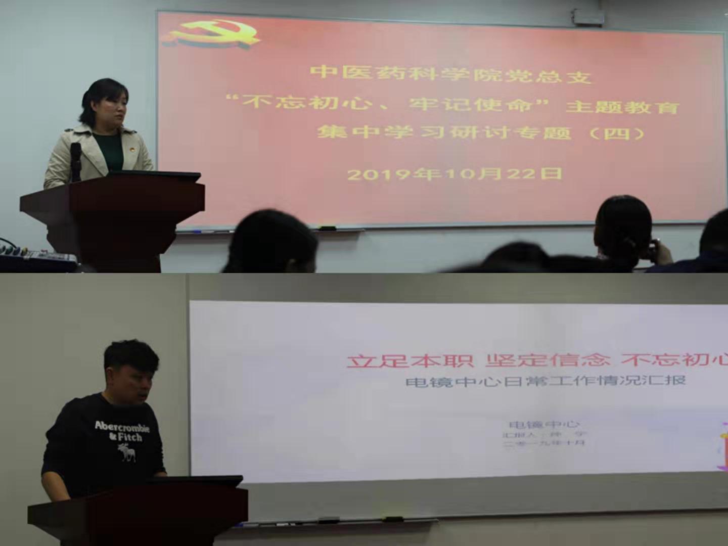 首先,党总支书记张振强传达关于转发中央主题教育领导小组《关于在“不忘初心、牢记使命”主题教育加强爱国主义教育、弘扬爱国主义精神的通知》的文件、领学习近平总书记关于弘扬新时代爱国主义精神的重要论述等;他强调,通过此次集中学习研讨,我们应在工作中时刻弘扬新时代爱国主义精神、坚定爱国主义信念,党总支也将组织开展参观红色教育基地、爱国主义教育基地等活动,大力开展革命传统教育、爱国主义教育;然后,杨文胜副院长领学《习近平新时代中国特色社会主义思想学习纲要》、《习近平关于“不忘初心、牢记使命”重要论述选编》等重要章节;李军副院长领学《使纪律真正成为带电的高压线》等重要内容。与会人员集体观看[面对面]凌锋:医者仁心先进事迹学习视频;最后,围绕“强化理想信念”、“坚定信仰”、加强公共服务平台内涵建设、结合实际工作等进行研讨交流,电镜中心主任孙宁、实验动物中心常务副主任孙瑞芹分别结合实际工作,就如何提升服务平台建设等方面分享了心得体会并提出了很好的意见和建议:一是牢固树立服务意识,提供高水平专业服务;二是紧密结合师生需求,认知开展调研,加强公共服务平台建设;三是努力学习专业知识,不断提升技术服务能力。
