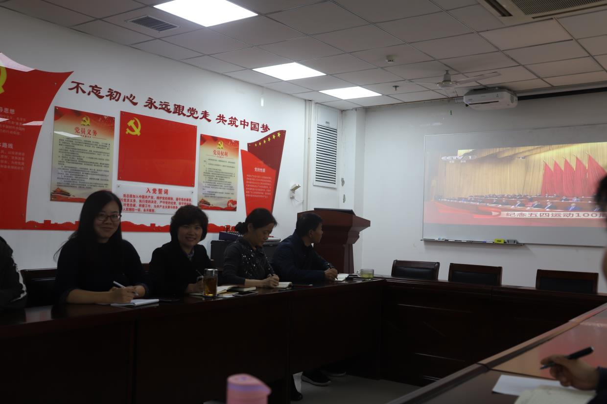 (文/张振强、图/李晓康)2019年4月30日上午10时30分,科研实验中心与实验动物中心组织处级干部、科级干部、业务科室主任/常务副主任、党小组组长和新进博士30人,在BM739会议室集中组织观看了“纪念五四运动100周年大会”直播。