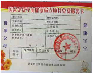 接明理路社区通知,国家免费孕前健康检查服务卡,在河南省直三院,周一至周五。发放范围学校职工及居住的居民,自行领取,地址在明理路社区物业楼3楼(财经政法大学)。电话:61772116。