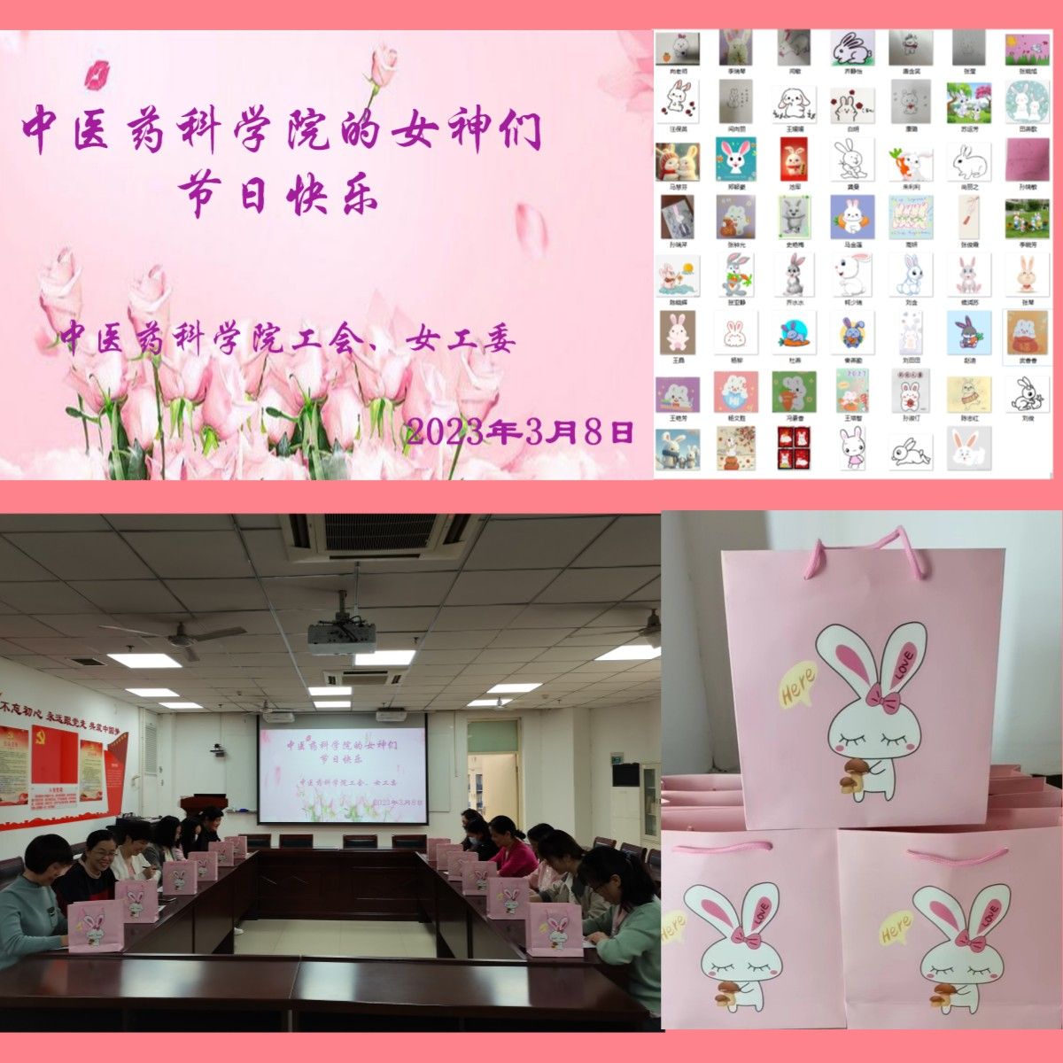 我院此次女神节的的纪念品是甜蜜蜜的大白兔多味套装,看着每一位女神美丽的面庞展现出幸福的笑颜,衷心的送上我们的祝福:“祝您女神节快乐!兔年好运连连!生活幸福甜蜜!工作中“兔”飞猛进再创佳绩!