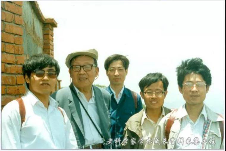 1988年6月,吴征镒带研究生赴西双版纳、昆明西山实习时在梁王山顶合影(左起:杨亲二,吴征镒,李建强,周浙昆,朱华)